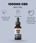 Nonipup’s Full Spectrum CBD 1000mg Tincture is specially formulated for larger sized dogs, or if you are looking to give your smaller dog a high dosage with less product.